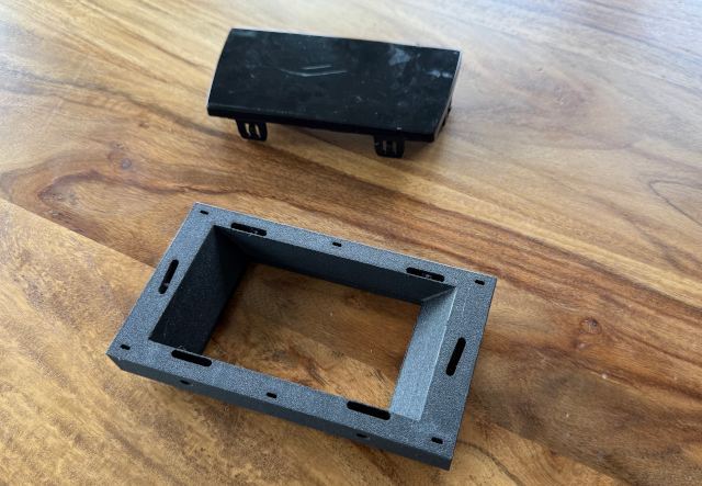 cruise control goes behind that little grille. Unfortunately, they did not mention how it was supposed to be attached there. First I printed a little frame and attached it to the